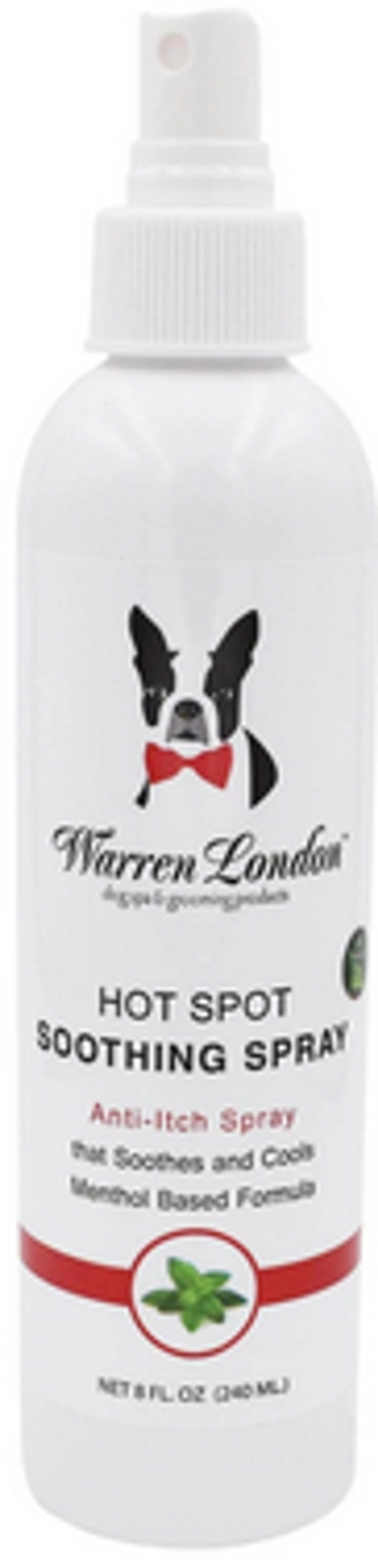 Warren London Hot Spot Soothing Spray provides instant topical relief to dogs and cats suffering from flea bites, hot spots, allergies and irritated skin. Infused With Natural Plant & Botanical Based Ingredients (Menthol, Clove Oil, Eucalyptus, and Peppermint Oil).